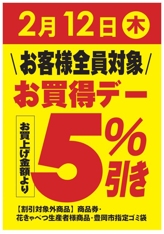 2月5日 木曜日【お客様全員対象】 “お買得デー” を開催いたします!