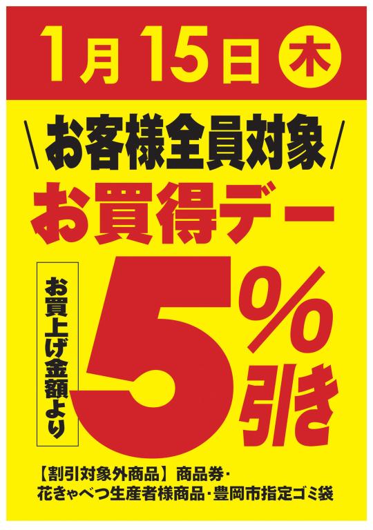 1月15日 木曜日【お客様全員対象】 “お買得デー” を開催いたします!
