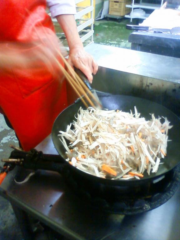 こうして、前日にきんぴらごぼうの準備が始まるのです。機械で切ったごぼうでないのが、美味しさの秘密です。