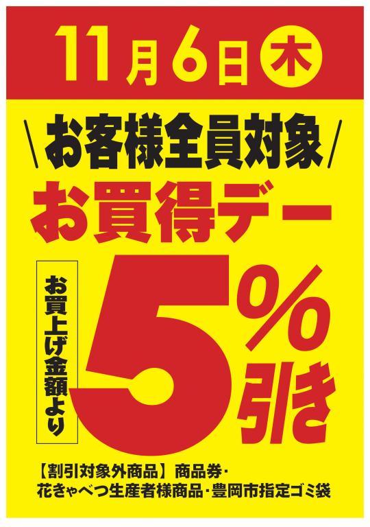 11月6日 木曜日【お客様全員対象】 “お買得デー” を開催いたします!