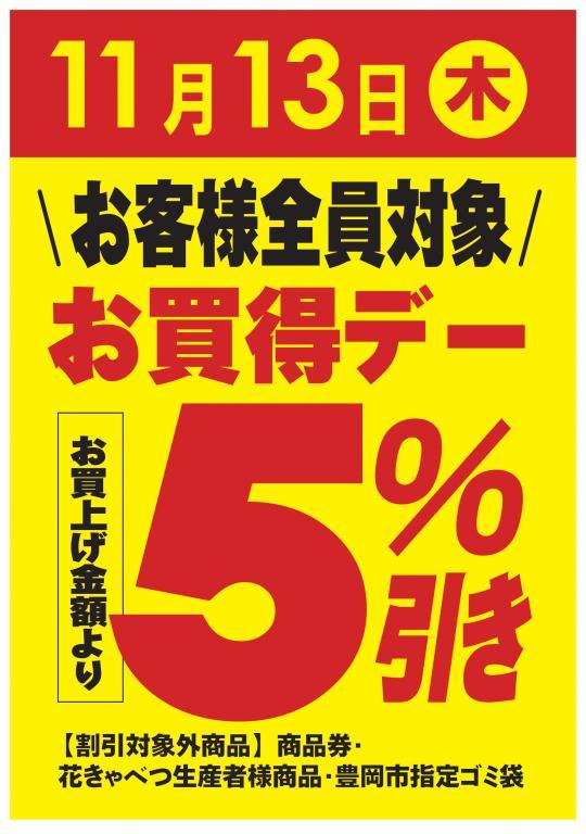 11月13日 木曜日【お客様全員対象】 “お買得デー” を開催いたします!