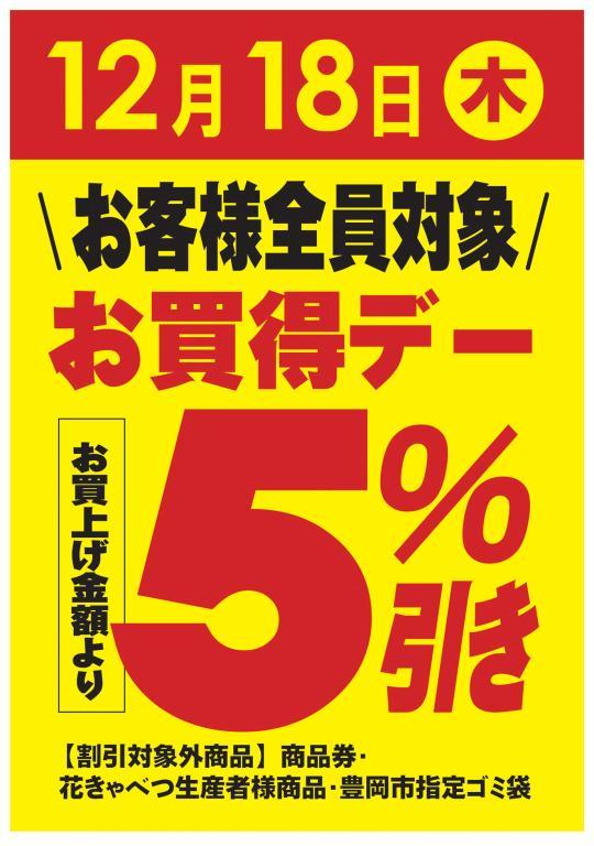 12月18日 木曜日【お客様全員対象】 “お買得デー” を開催いたします!