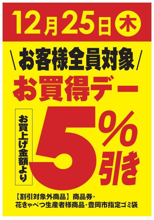 12月25日 木曜日【お客様全員対象】 “お買得デー” を開催いたします!