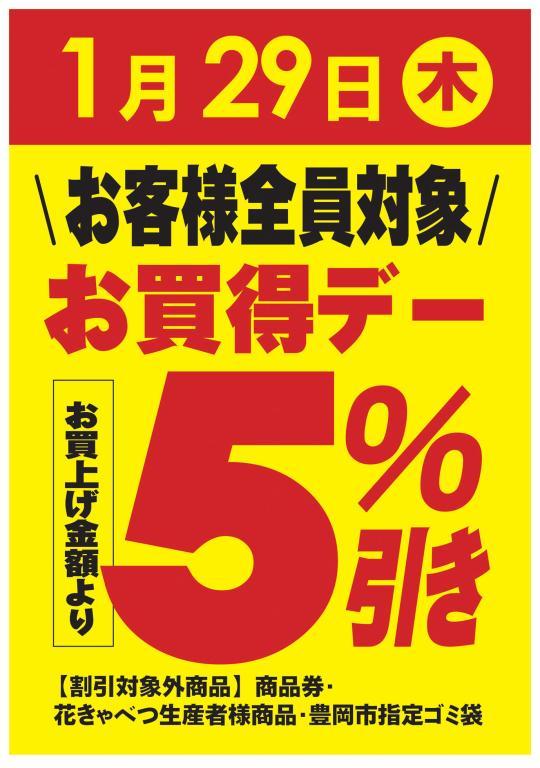 1月29日 木曜日【お客様全員対象】 “お買得デー” を開催いたします!